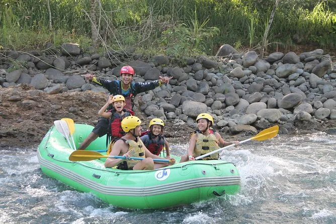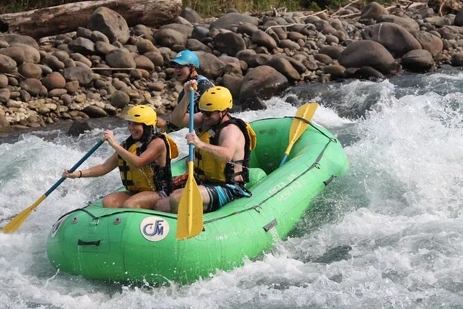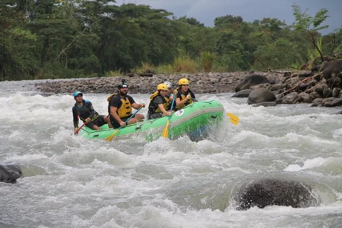 Seu passeio da tarde inclui transporte do hotel em La Fortuna, ida e volta ao rio (cerca de 30 minutos cada trecho), todo o equipamento para rafting nas corredeiras Classe II & III com guia local, frutas frescas após o remo, além de tempo para relaxar com chocolate quente ou café num restaurante com vista para o Vulcão Arenal antes do retorno ao pôr do sol.