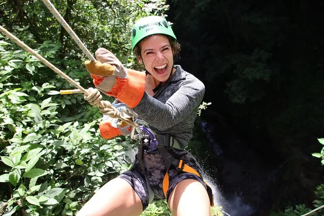 Você vai se jogar no lado selvagem de La Fortuna, fazendo rapel em cachoeiras com os guias da Pure Trek, pulando na piscina pelo Monkey Drop, vendo animais escondidos na mata e depois curtindo um almoço fresquinho no jardim da base. Prepare-se para nervos, risadas, tênis molhado — e um dia que você vai lembrar para sempre depois de sair da Costa Rica.