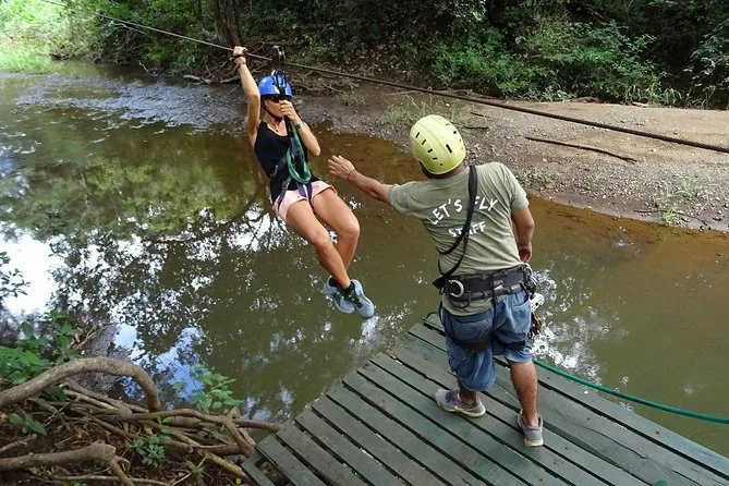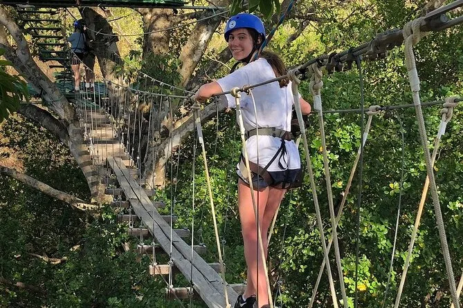 Seu dia inclui acompanhamento de guias locais bilíngues que cuidam de todas as instruções de segurança antes de você se aventurar pelas sete tirolesas. Água mineral é fornecida para manter você hidratado enquanto enfrenta a ponte suspensa e o balanço Tarzan perto de Tamarindo.