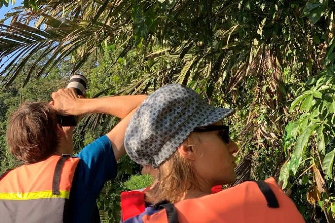 Seu dia inclui um guia local licenciado que conduz o grupo de canoa ou caiaque pelos canais cheios de vida do Parque Nacional Tortuguero. Você pode escolher o idioma do passeio. A atividade é totalmente acessível para cadeirantes e indicada para todos os níveis de preparo físico; bebês podem participar acompanhados de um adulto.