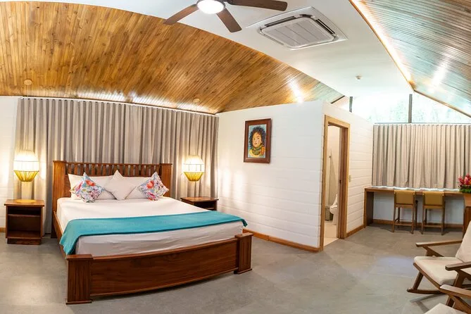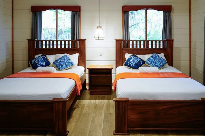 Sim, você fica duas noites em uma pousada confortável rodeada pela natureza em Tortuguero.