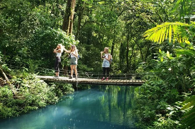 A caminhada é moderada e acontece em floresta madura perto do Volcão Tenorio. A distância exata varia, mas espere algumas horas andando.