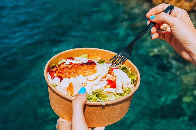 Seu dia inclui três paradas para banho em Brač, Ilhas Pakleni e Šolta; um cruzeiro de catamarã de oito horas; café da manhã com pastel local; almoço com salada de frango (ou opção vegetariana); frutas frescas e bolos caseiros; bebidas ilimitadas como cerveja, vinho, refrigerantes e café após a primeira parada; Wi-Fi a bordo; além de um tour guiado por Hvar com tempo livre antes do retorno a Split à noite.
