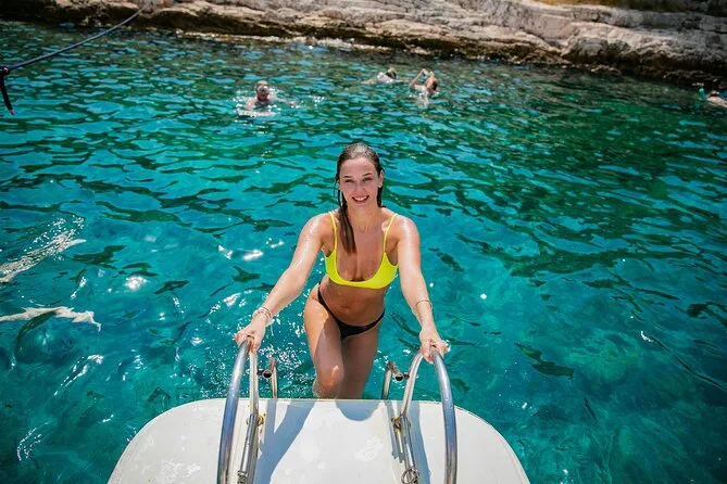 O cruzeiro faz três paradas para banho: perto da Ilha de Brač, Ilhas Pakleni e Ilha de Šolta.