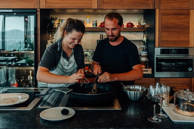 Você vai acompanhar os cães farejadores na floresta de Motovun com a família Karlić, caçar trufas verdadeiras da Istria, provar aguardentes e vinhos caseiros, cozinhar pratos tradicionais juntos—até a sobremesa ganha um toque especial de trufa. Prepare-se para risadas na cozinha e histórias que vão ficar na memória muito depois do passeio.