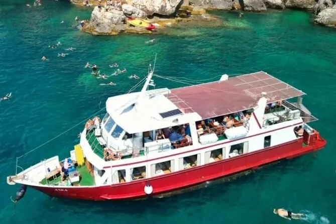 Eu não sabia bem o que esperar quando embarcamos no Sandra, no porto de Medulin — só lembro do cheiro do mar e de alguém me entregando uma bebida gelada na hora. Nosso guia, Marko, sorriu e avisou para ficarmos de olho nos golfinhos, mas “não ficarmos chateados se eles estivessem tímidos”. O barco já tocava uma música simples (playlist de alguém, nada elaborado), e algumas crianças já dançavam antes mesmo de sairmos do cais.
