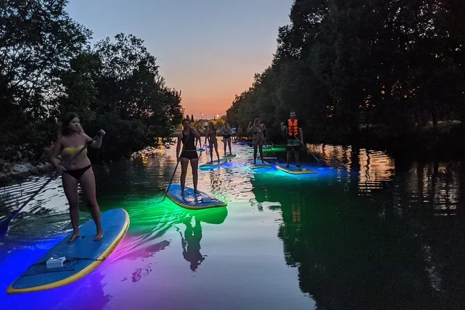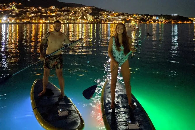 Remar pelo mar e rio de Split depois do pôr do sol em pranchas de SUP iluminadas, guiado por um local que conta histórias pelo caminho. Momentos de silêncio sob falésias estreladas, peixes passando sob a prancha e um mergulho na calmaria longe do barulho da cidade. Inclui traslado, equipamento completo e instrução amigável — você vai lembrar da água brilhando sob você.