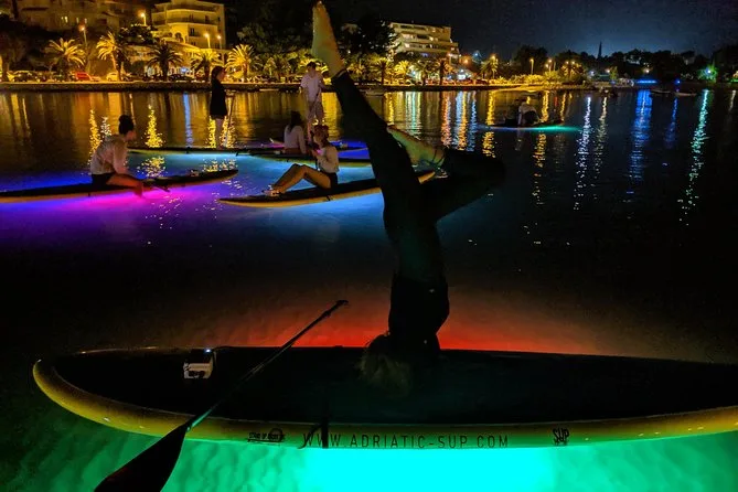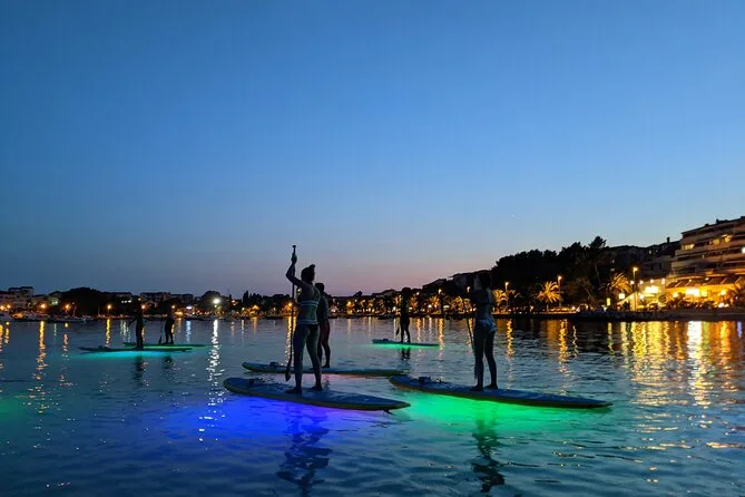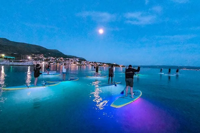 Sua noite inclui transfer compartilhado de ida e volta do camping de Split até a praia de Stobreč, uso de prancha rígida de touring SUP com luzes de LED personalizadas, colete salva-vidas opcional para segurança, instrução básica de stand up paddle com treinador certificado antes da saída, e acompanhamento de um guia local licenciado que vai contar histórias durante o passeio.