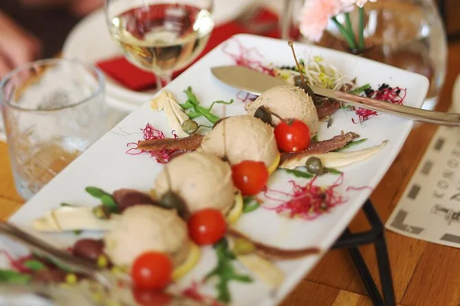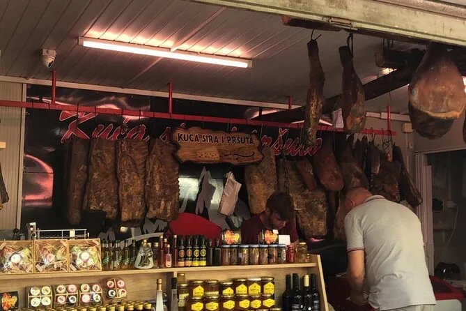 Seu dia inclui degustações guiadas no Mercado Verde de Split (ou tavernas locais à tarde), presunto e queijos tradicionais da Dalmácia com pão ou torta soparnik, dois tipos de massas com frutos do mar mais risoto negro acompanhados de vinho tinto; ensopado de polvo com nhoque e licor doce se escolher o turno da tarde; gelato ou doces sazonais; tudo conduzido por uma guia local amigável que traz a história à vida enquanto você caminha pelo Palácio de Diocleciano e termina na orla da cidade compartilhando histórias e vinho antes de seguir para sua noite em Split.