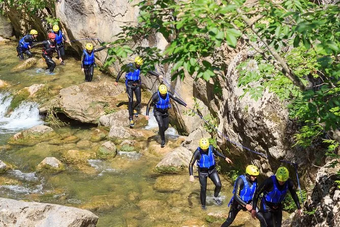 Escale pedras, deslize em piscinas cristalinas e nade sob cachoeiras neste tour de canyoning no Rio Cetina, com guia local saindo de Split ou Zadvarje. Equipamento completo, transfers e diversão garantida sem preocupação — só traga energia e um lanchinho extra.
