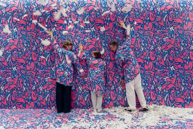 Já estávamos rindo antes mesmo de passar pela primeira sala do IKONO Copenhague — sério, quem espera ver adultos se jogando numa piscina de bolinhas prateadas? Mas lá estávamos nós. A equipe só sorriu e acenou, como se já tivesse visto de tudo (provavelmente viu). No ar, um cheirinho de tinta fresca misturado com algo doce, talvez vindo da sala iluminada por neon cheia daqueles pirulitos gigantes — não cheguei a tocar, mas deu vontade. Não é um museu para andar na ponta dos pés; aqui você tem que se envolver, e confesso que levei um tempinho para me acostumar.