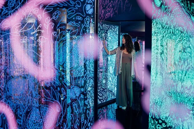 Seu ingresso garante acesso completo a mais de 10 salas imersivas no IKONO Copenhague. A equipe está sempre por perto para ajudar com fotos ou indicar o caminho entre os espaços — sem taxas extras ou surpresas escondidas.