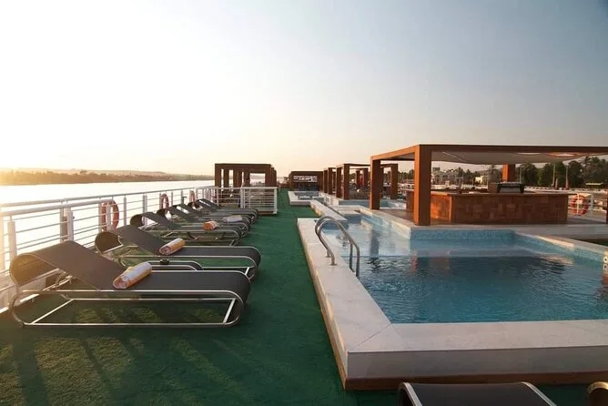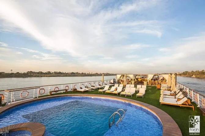 São três noites em um navio de cruzeiro 5 estrelas entre Aswan e Luxor.