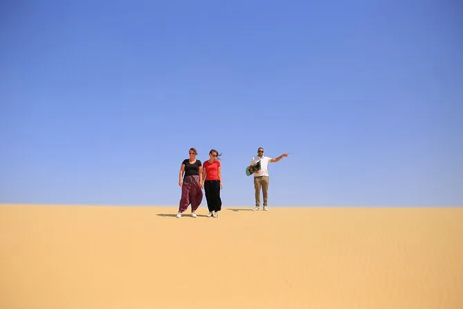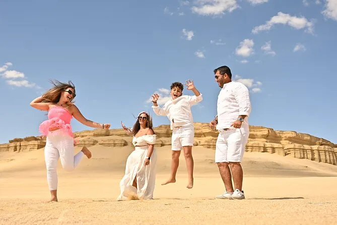 Seu dia inclui transporte de ida e volta do hotel no Cairo ou Giza em veículo com ar-condicionado; todas as aventuras de 4x4 nas dunas; sandboard nas dunas de Fayoum; visitas ao Lago Qarun, Montanha Mudawara, cachoeiras de Wadi El Rayan e Magic Lake; passeio de camelo ou cavalo no lago Wadi El Rayan; água mineral durante todo o passeio; além de um almoço reforçado com churrasco no acampamento beduíno antes do retorno confortável ao hotel.