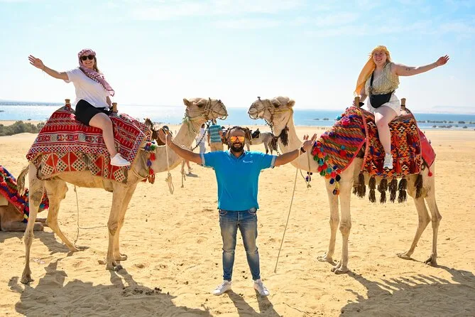 Deixe o Cairo para trás e viva um dia entre dunas selvagens e lagos tranquilos: aventure-se de 4x4 pelas areias de Fayoum, experimente sandboard (quedas garantidas), ande de camelo perto das cachoeiras de Wadi El Rayan e saboreie um churrasco no acampamento beduíno. Prepare-se para rir, sentir o sol no rosto e colecionar memórias que vão ficar mesmo depois de tirar a areia dos sapatos.