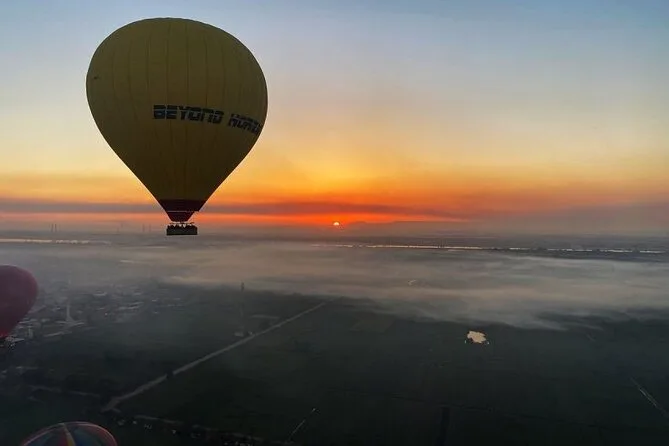 Sim, o roteiro inclui um voo de balão ao amanhecer sobre Luxor.