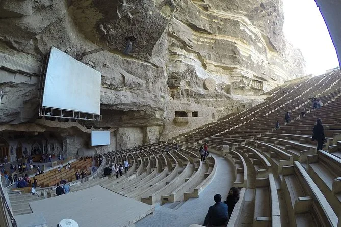 A Igreja da Caverna de São Simão é enorme — toda esculpida na rocha. É estranho estar dentro de um lugar que comporta milhares de pessoas, mas que ainda assim parece tão silencioso. Ahmed mostrou algumas gravuras nas paredes de pedra; disse que tem gente que vem só para ficar em silêncio. Teve um momento em que a luz do sol bateu no altar e iluminou a poeira no ar — tudo brilhou por um instante. Tentei tirar uma foto, mas desisti; parecia melhor só apreciar.