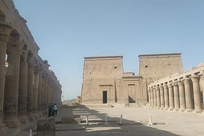 Nosso último dia completo começou com um curto passeio de barco até a Ilha Agilika. A brisa do rio era um alívio depois de dias no calor do deserto. O Templo de Philae fica bem na beira da ilha — as colunas se refletiam na água azul. Ahmed explicou como eles moveram o templo pedra por pedra quando o Lago Nasser inundou o local original. Tirei várias fotos, mas também fiquei ali parado um tempo, absorvendo o silêncio, só com o som dos pássaros ao longe.