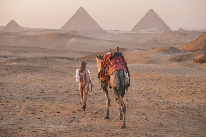 Sua semana inclui traslados privados do aeroporto, três noites em hotel em Cairo com café da manhã, três noites a bordo de um cruzeiro 5 estrelas no Nilo com todas as refeições, passeios guiados nos principais pontos desde as Pirâmides de Gizé até o Vale dos Reis (com entradas pagas), voos domésticos entre as cidades, água mineral durante os passeios, além de passeio de camelo em Gizé e vela de feluca em Aswan antes do retorno a Cairo.