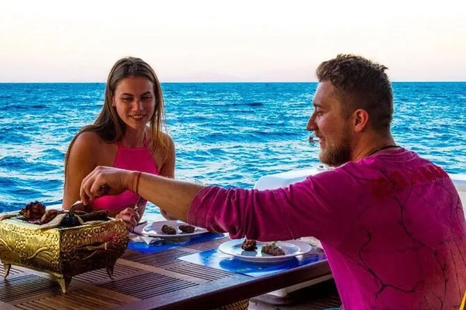 O cruzeiro dura cerca de 6 a 7 horas, retornando à marina de Hurghada às 15h30.
