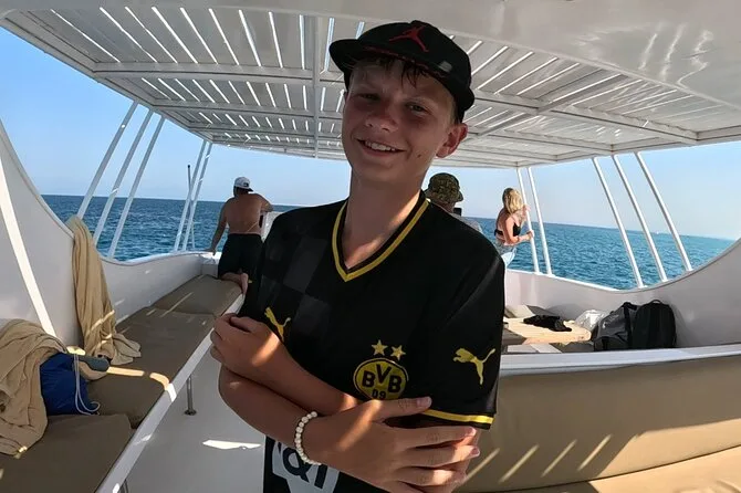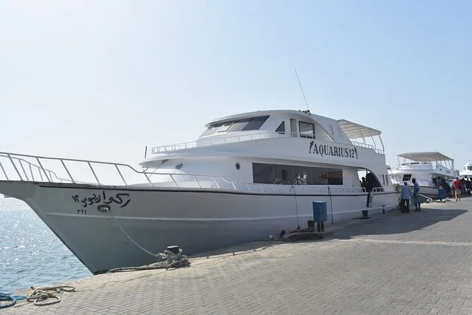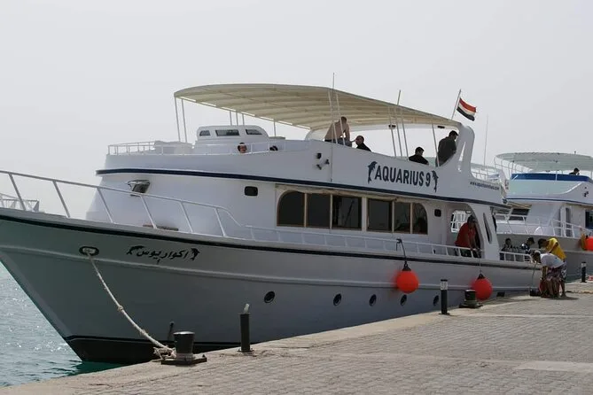 Seu dia inclui transporte do hotel em Hurghada (ou transfer pago de resorts próximos), dois mergulhos guiados com instrutores profissionais de um clube PADI 5 estrelas, acesso a bebidas e água durante todo o dia, almoço servido a bordo entre os mergulhos; snorkel disponível para não mergulhadores e crianças até seis anos entram grátis.