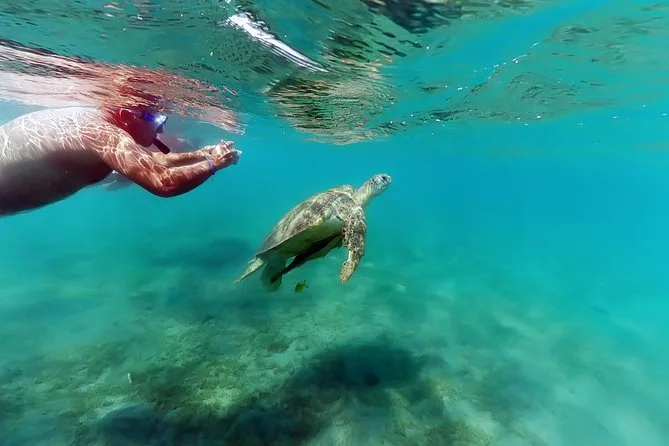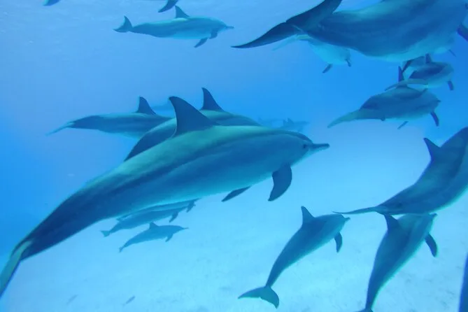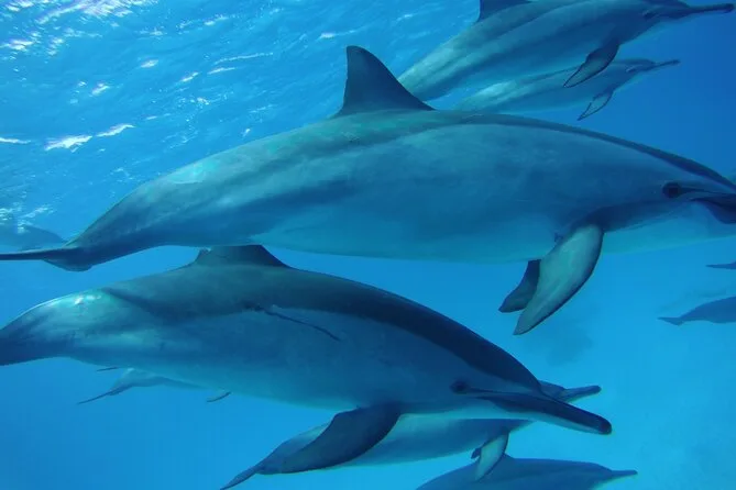 Você vai nadar ao lado de golfinhos selvagens perto do famoso Dolphin House em Hurghada, guiado por locais que conhecem essas águas como a palma da mão. Faça snorkel nos recifes coloridos do Mar Vermelho, relaxe no convés com um buffet fresquinho e chá feito na hora — tudo com equipamentos e transporte do hotel inclusos. É aquela combinação rara de emoção e tranquilidade que fica na memória muito depois da pele secar.