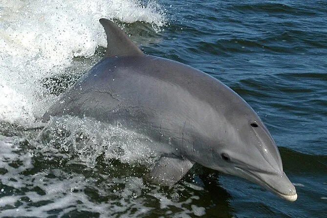 Golfinhos aparecem com frequência, mas como são animais selvagens, não há garantia.