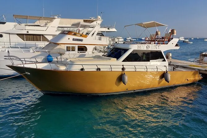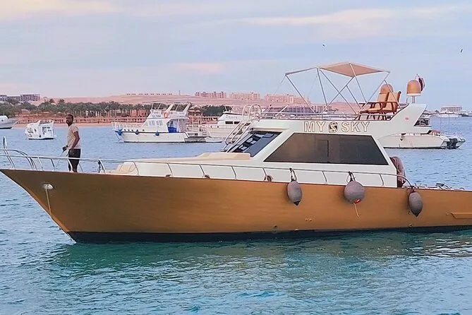 Você vai nadar ao lado de golfinhos selvagens perto de Hurghada, fazer snorkel em recifes vibrantes cheios de vida, saborear um almoço simples a bordo do seu barco privativo e curtir aquela sensação rara de estar sem pressa—apenas o ar salgado e risadas entre as ilhas.