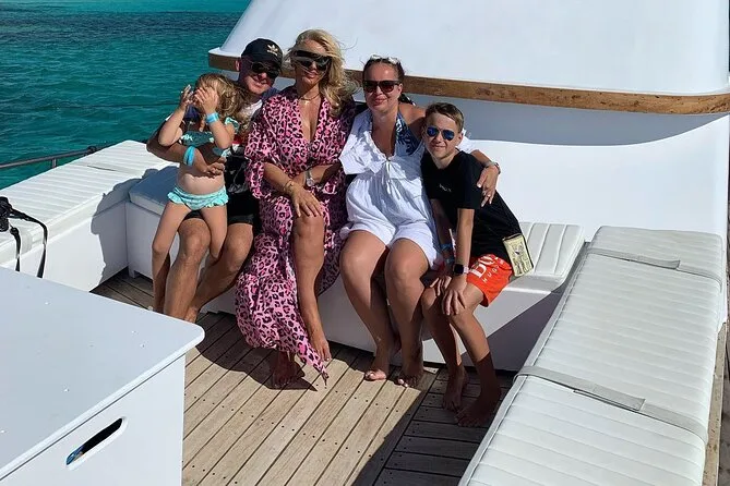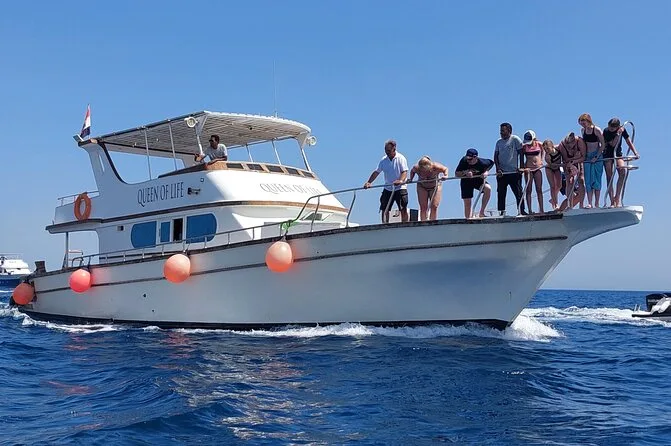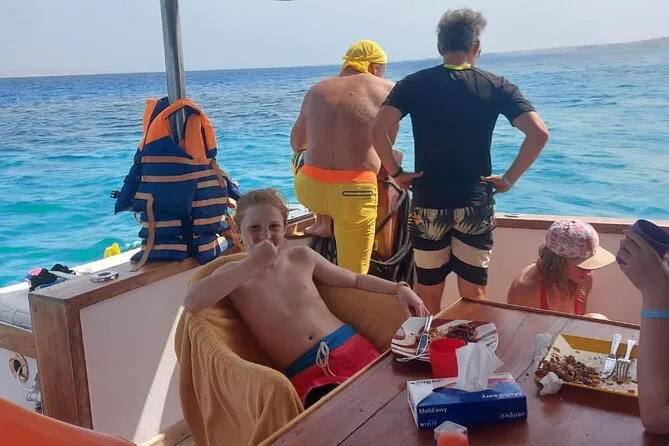 O roteiro padrão inclui a Ilha Abu Minqar; paradas opcionais em Orange Bay ou Eden Island estão disponíveis por um custo extra.