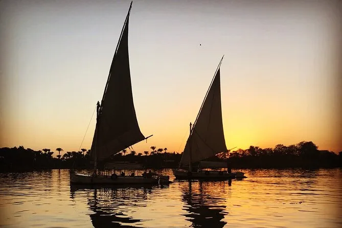 Seu dia inclui transporte privado do hotel em veículo com ar-condicionado, passeios de felucca no Nilo ao nascer e pôr do sol com guia local qualificado contando histórias, além de chá tradicional egípcio a bordo — tudo com taxas incluídas para você só relaxar.