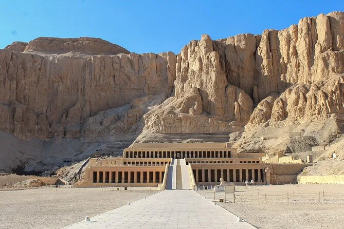 Você visitará os templos de Karnak, Luxor, Hatshepsut, Medinet Habu e verá os Colossos de Memnon.