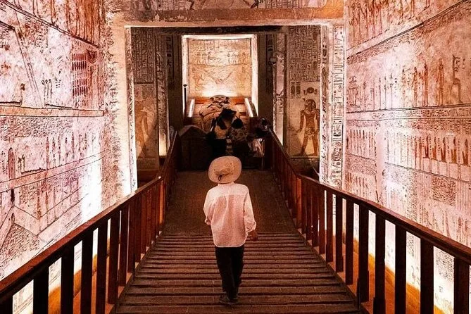 Você visita o Vale dos Reis, o Vale das Rainhas e os Colossos de Memnon.