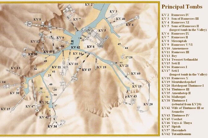 O ingresso cobre a entrada em três túmulos abertos, como Ramsés IV ou Merenptah; outros, como o de Tutancâmon, exigem ingresso extra.