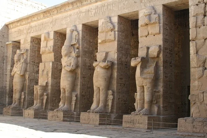 Prepare-se para explorar a West Bank de Luxor com um guia local: caminhe pelos túmulos reais no Vale dos Reis, fique diante das estátuas antigas em Memnon, descubra as gravações de batalhas em Medinet Habu e suba até o templo de Hatshepsut na encosta. Momentos que vão ficar na memória muito depois da sua viagem ao Egito.