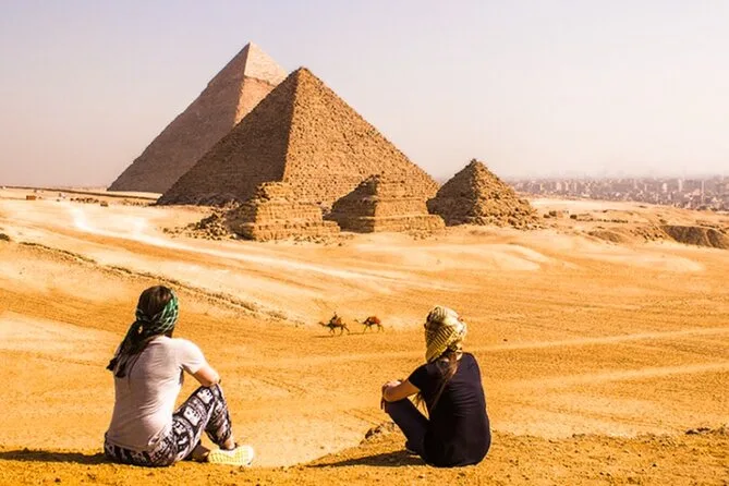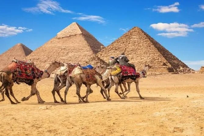O seu dia inclui traslado de ida e volta do hotel em Gizé em veículo com ar-condicionado, transporte entre os pontos com o grupo, acompanhamento de um guia local experiente que fala vários idiomas, além do passeio de camelo perto das pirâmides antes de voltar com conforto ao final do dia.