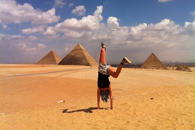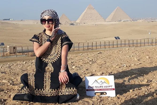 O dia inclui traslado privativo de ida e volta do hotel no Cairo ou Gizé, entradas se selecionadas, acompanhamento de um guia local especializado durante a visita às pirâmides e Esfinge, água mineral durante o passeio, além do almoço em restaurante local se essa opção for escolhida, antes do retorno ao hotel.