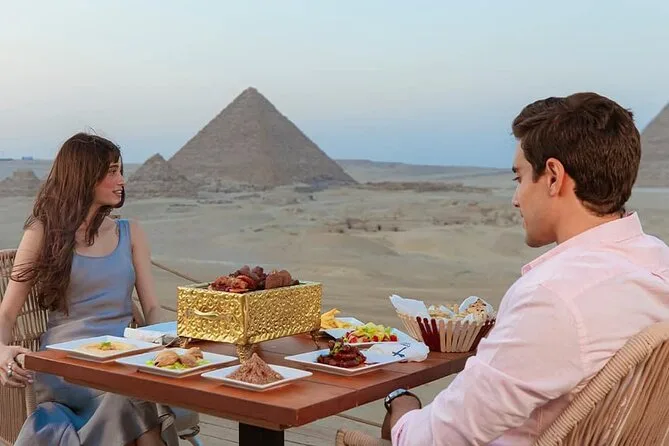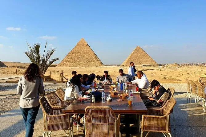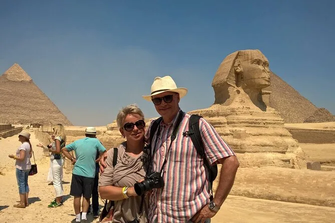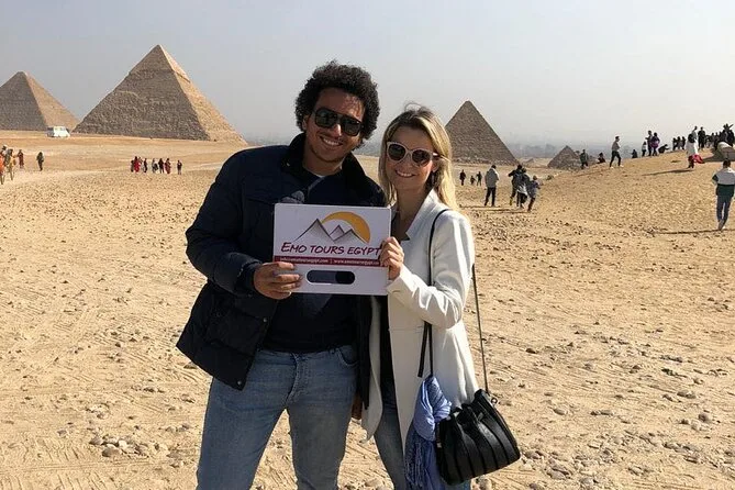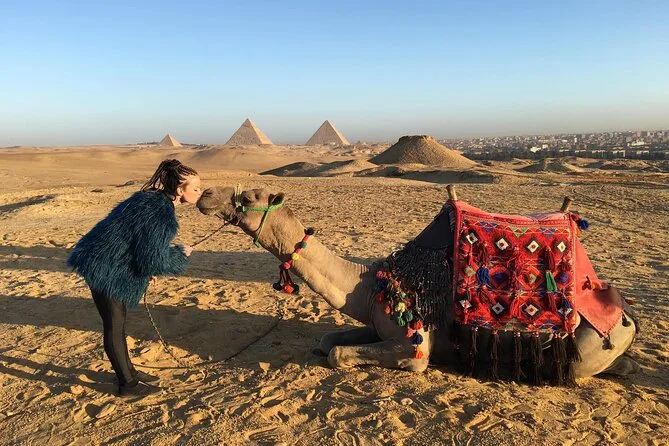 Você vai chegar pertinho da Grande Pirâmide de Gizé enquanto seu guia conta histórias que dão vida ao Egito antigo, ficar cara a cara com a Esfinge para aquela foto clássica (poses engraçadas são bem-vindas), visitar oficinas locais de perfumes e arte em papiro, e voltar pro hotel com areia nos sapatos — e talvez algo novo na cabeça.