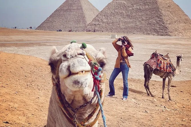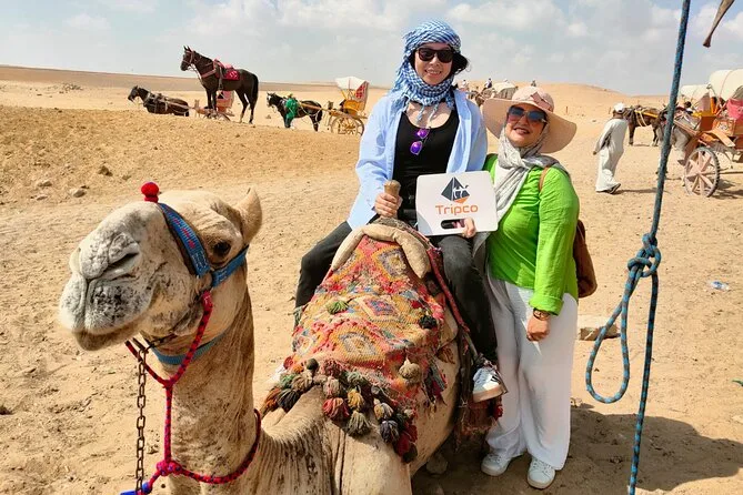 Os passeios de camelo são opcionais e podem ser adicionados durante a visita às pirâmides.