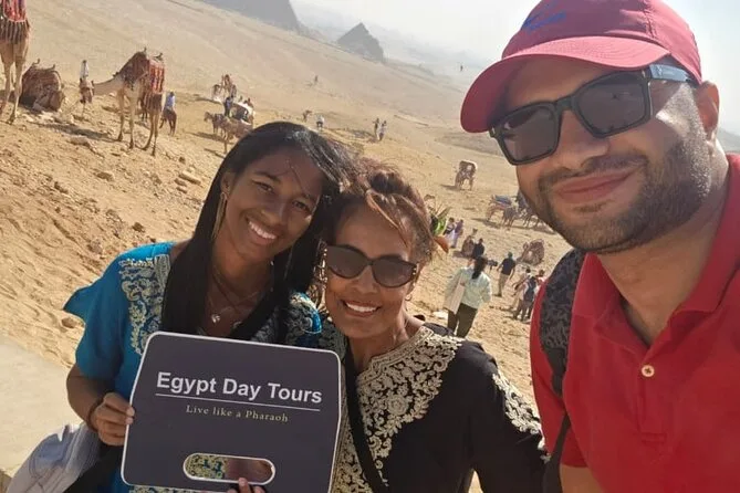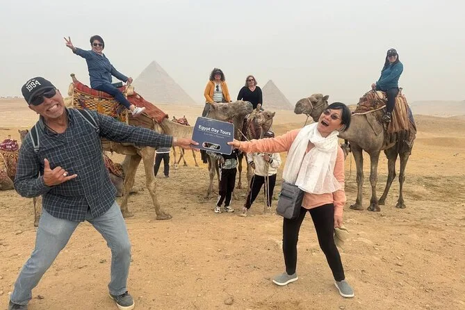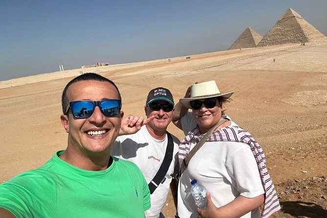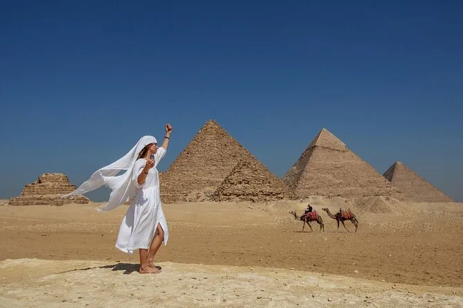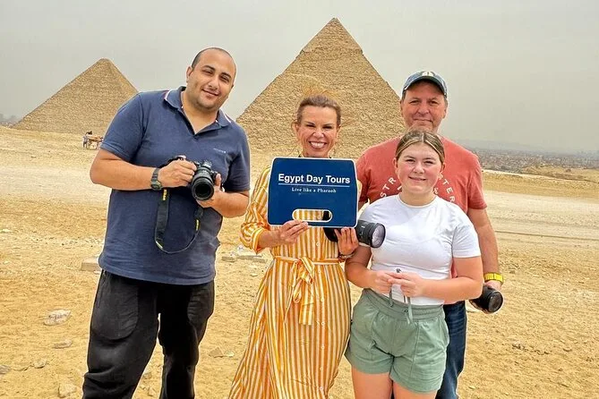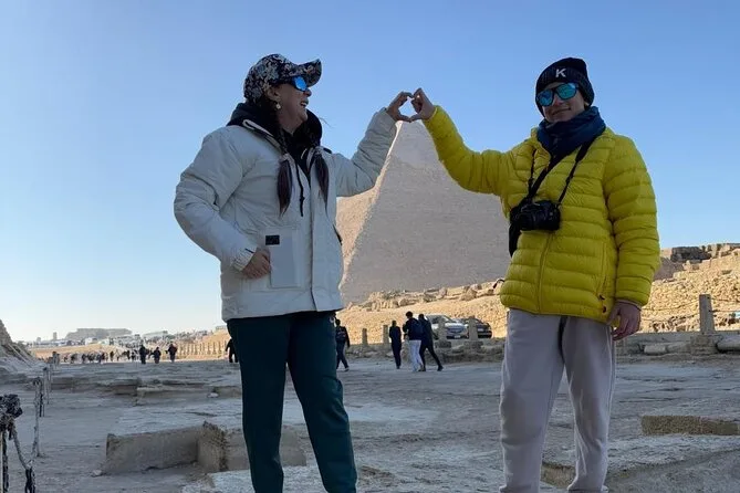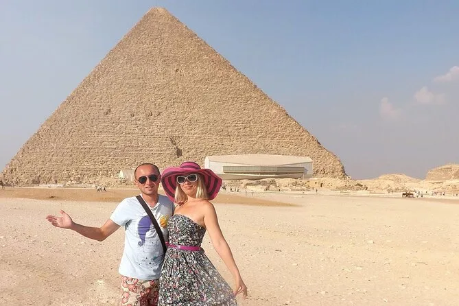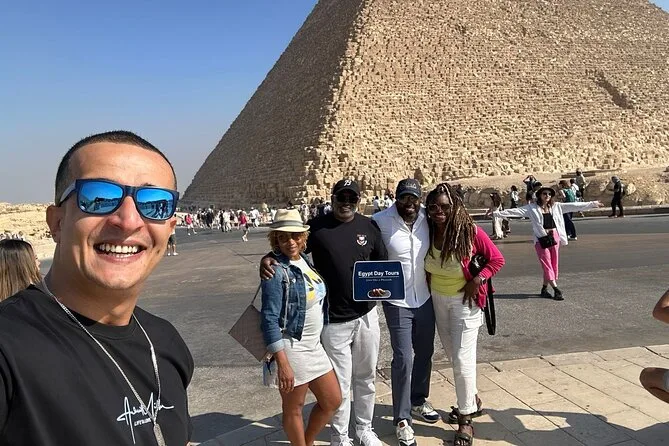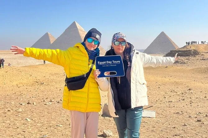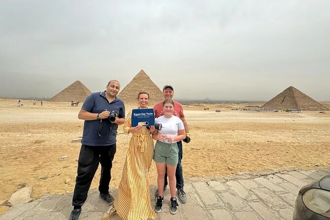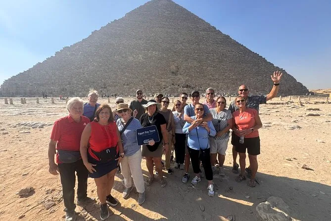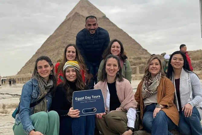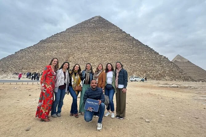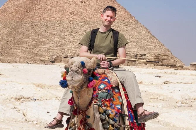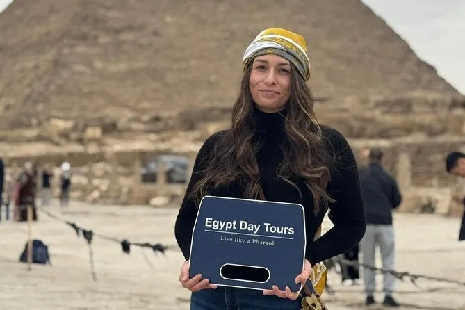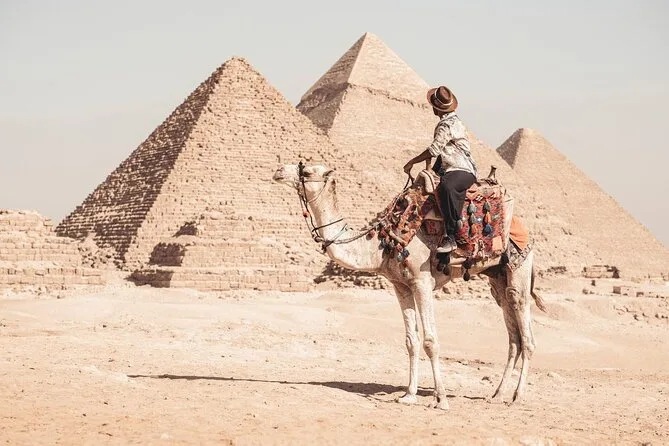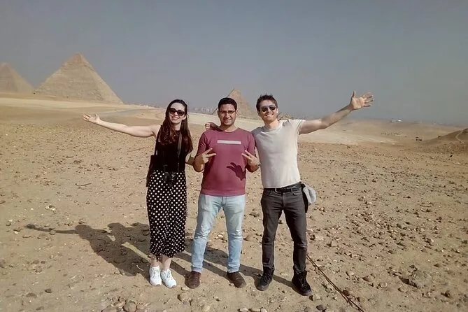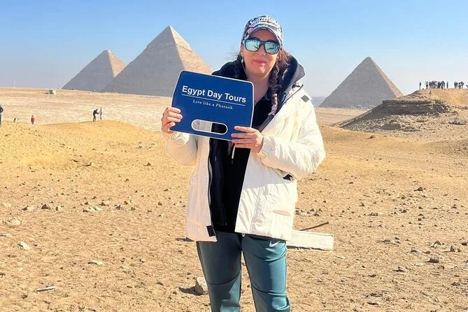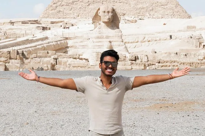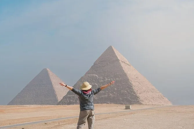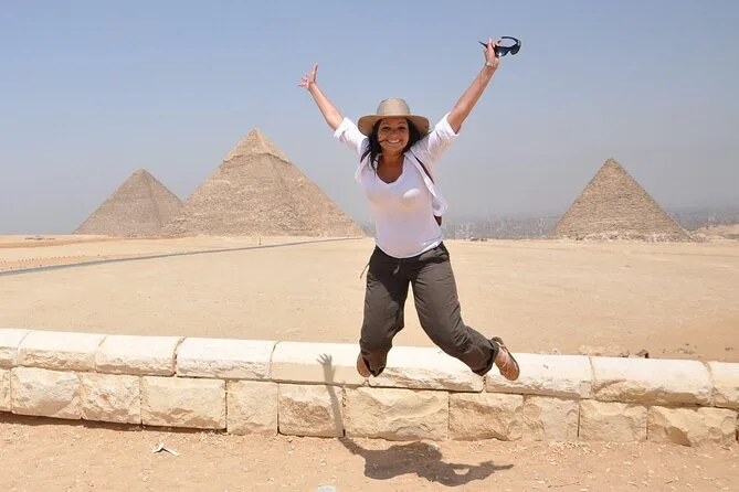 Seu dia inclui traslado de ida e volta do hotel no Cairo ou Gizé em van com ar-condicionado, acompanhamento de um egiptólogo qualificado durante toda a visita às pirâmides e à Esfinge, além de todas as taxas para você curtir só a história (e talvez um pouco de areia).