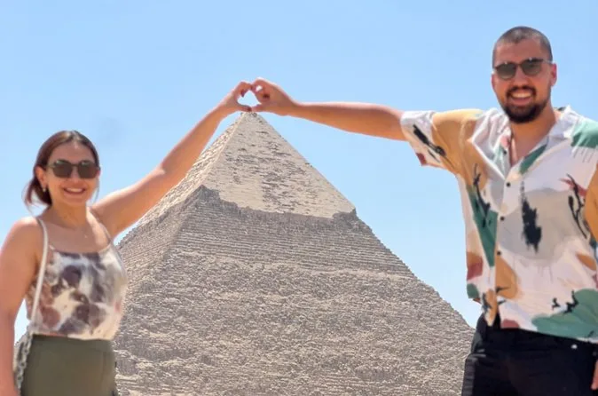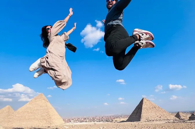 Você vai ficar sob as enormes pedras das Pirâmides de Gizé, entrar em câmaras antigas com um guia egiptólogo, passear de camelo pelas areias douradas com vista panorâmica do Cairo e almoçar num restaurante local onde os sabores ficam na memória. História e momentos inesquecíveis em cada passo.