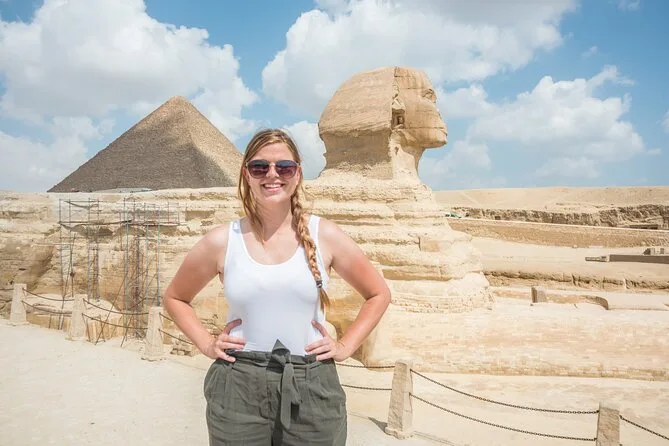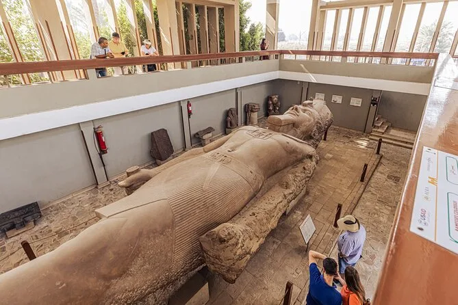 Seu dia inclui transfer de ida e volta do hotel no Cairo ou Gizé, transporte com ar-condicionado e água, todos os ingressos se selecionados na reserva (área das Pirâmides de Gizé e Esfinge, Saqqara e Mênfis), acompanhamento de um egiptólogo experiente em cada parada — e almoço se escolher a opção Privada, antes de voltar para o hotel.
