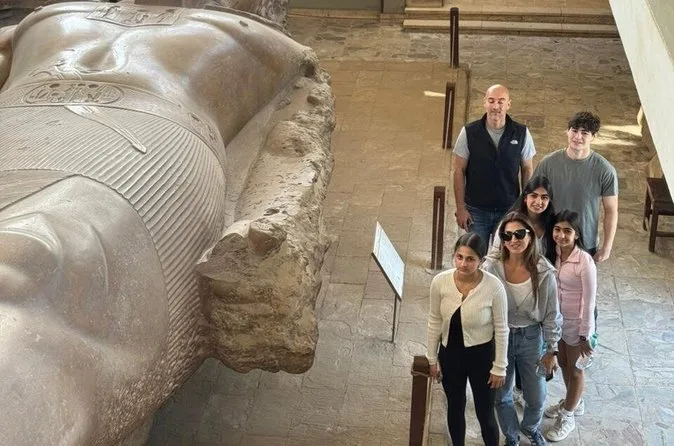 Você visitará o museu do Colosso de Ramsés II e verá a Esfinge de alabastro perto das ruínas antigas de Memphis.