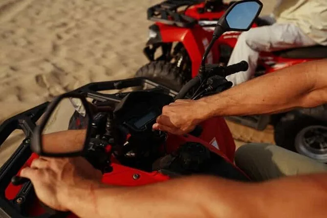 O passeio de quadriciclo cobre a distância até a Montanha do Eco e o acampamento beduíno; o tempo varia, mas espere cerca de 1 a 2 horas no total.
