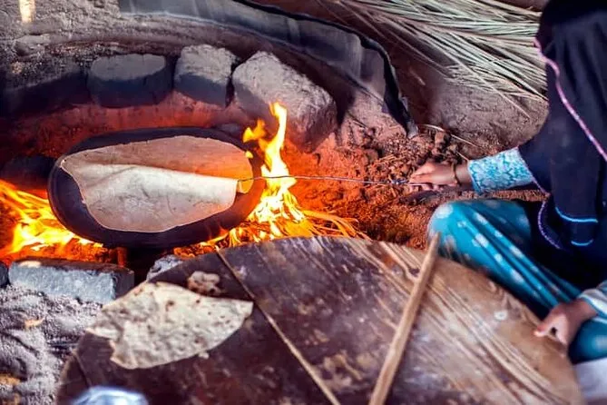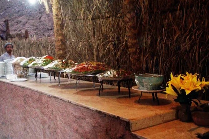 Sim, você vai aproveitar um jantar buffet beduíno com churrasco, pão fresquinho e chá de ervas no acampamento.