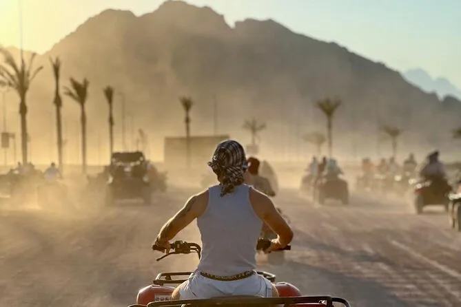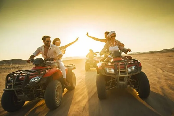 Você vai acelerar de quadriciclo pelo deserto aberto do Sinai saindo de Sharm El Sheikh, fazer uma pausa para chá beduíno e pão fresco em um acampamento, curtir um passeio tranquilo de camelo e depois jantar churrasco sob as estrelas com música e show de fogo. Prepare-se para risadas, sabores novos e um pouco de areia nos sapatos no fim da noite.