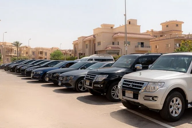 Sua viagem inclui transporte privado do Aeroporto do Cairo para qualquer lugar em Gizé em veículo com ar-condicionado, com pickup direto na saída do saguão por um motorista local que ajuda com as malas — além de suporte via contato móvel 24 horas caso precise.