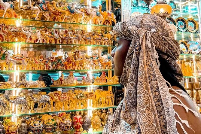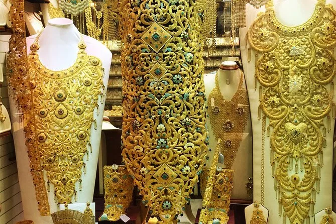 Você vai conhecer o bairro histórico de Al Fahidi, o Museu de Dubai (por fora), Temple Lane, o Souk dos Tecidos, o Souk das Especiarias e o Souk do Ouro.