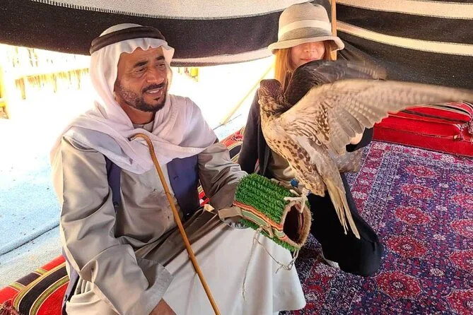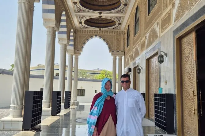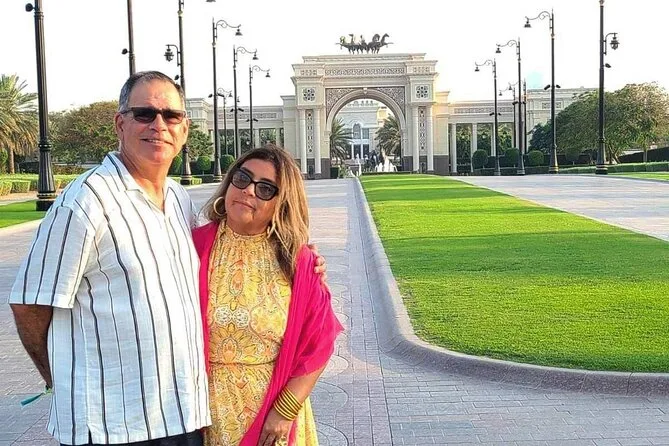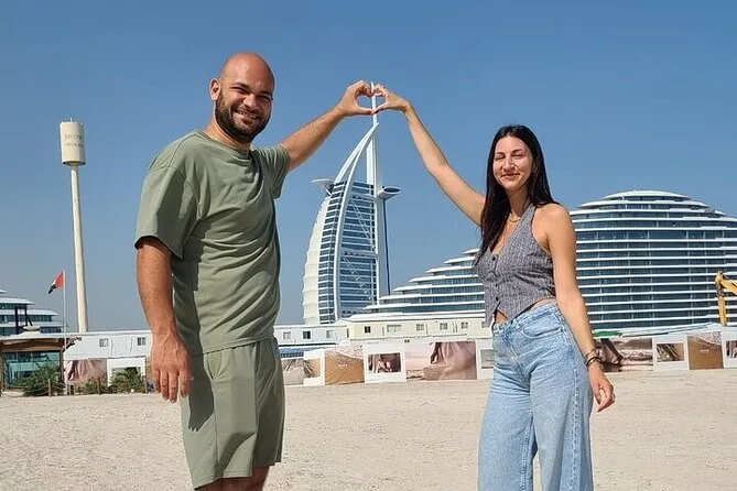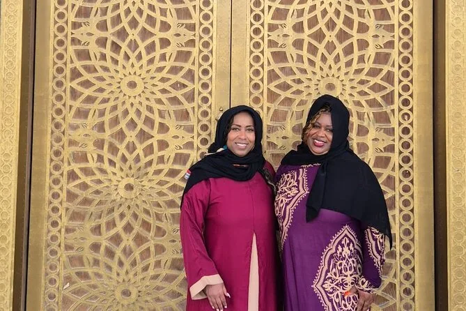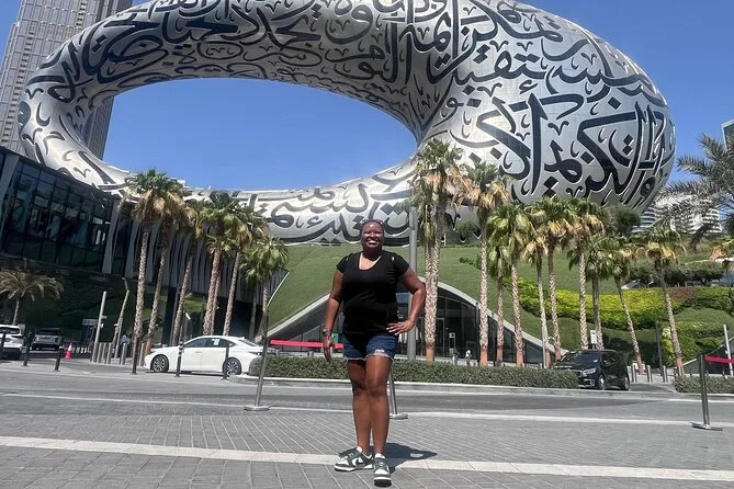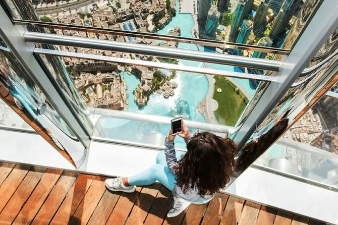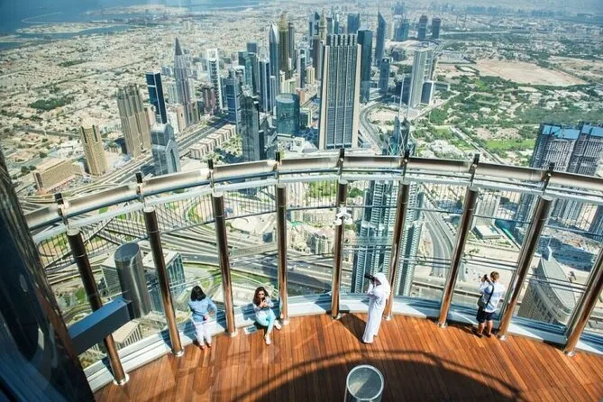 Seu dia inclui transporte privado com pickup flexível em qualquer lugar de Dubai — hotel, aeroporto ou porto de cruzeiro — além de um passeio de abra pelo Dubai Creek com seu guia local conduzindo pelo Bairro Histórico Al Fahidi. Você fará uma pausa para chá ou café árabe com tâmaras antes de explorar os souks de ouro e especiarias, seja para compras ou para sentir a atmosfera local. Os ingressos para Burj Khalifa At The Top estão incluídos se selecionados; caso contrário, há paradas para fotos em pontos como Museu do Futuro, Mesquita Azul (com roupas tradicionais), Palm Jumeirah e outros — tudo personalizável para o seu ritmo, com retorno para onde precisar na cidade.