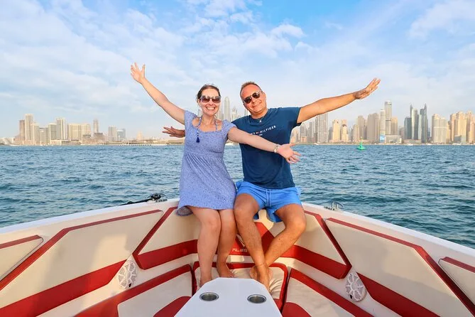 Não fazia ideia do que esperar quando chegamos ao Dubai Harbour — era uma daquelas manhãs em que a cidade parecia ainda estar acordando, só que a gente e a equipe já estavam a mil. O barco era mais novo do que imaginei (o guia Khalid comentou que era modelo 2022 — dava pra ver que ele se orgulhava), e tinha aquele cheirinho de sal misturado com óleo de motor que ficou nas minhas mãos depois que segurei o corrimão. Partimos rumo à Praia de JBR, passando por outros barcos cheios de gente acenando ou grudada no celular. Foram uns 15 minutos, mas pareceram menos, talvez porque eu não parava de olhar para o skyline ficando cada vez menor atrás da gente.