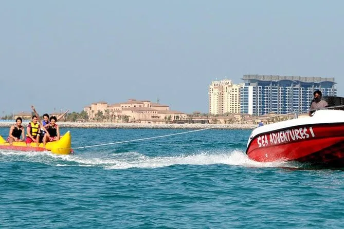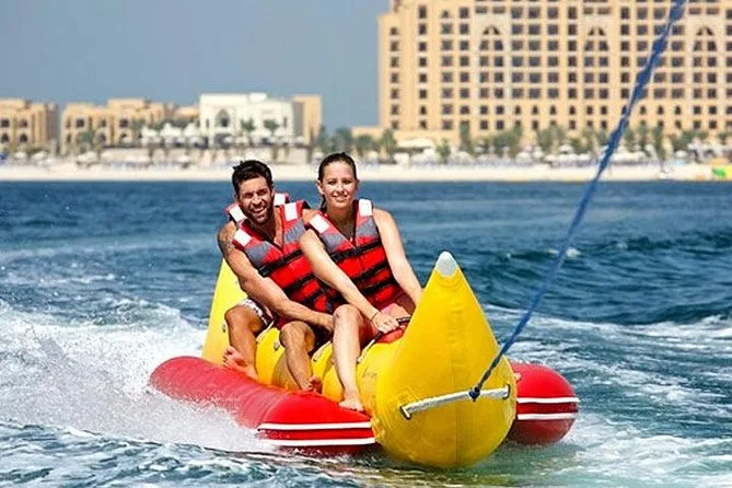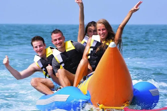 Seu passeio de banana boat inclui colete salva-vidas ajustado para cada participante e acompanhamento de um profissional experiente durante toda a atividade.